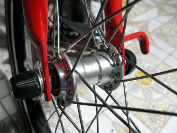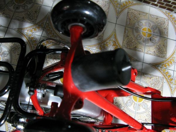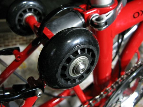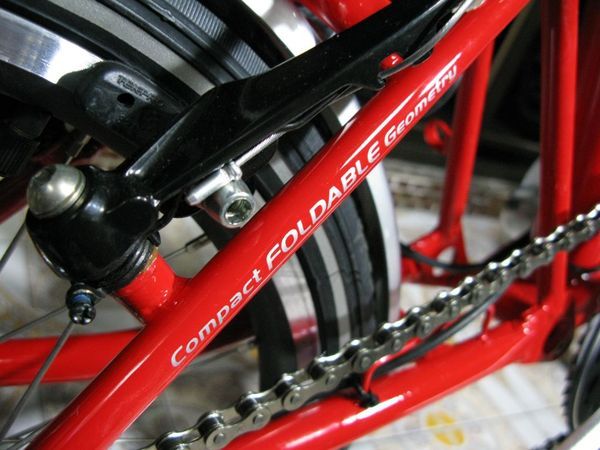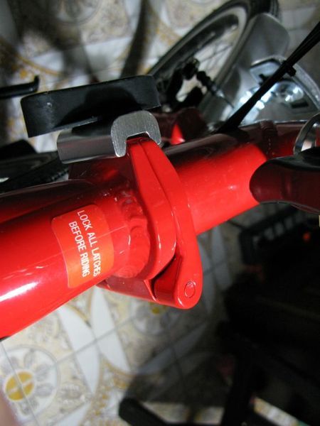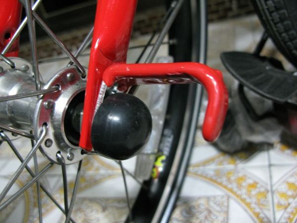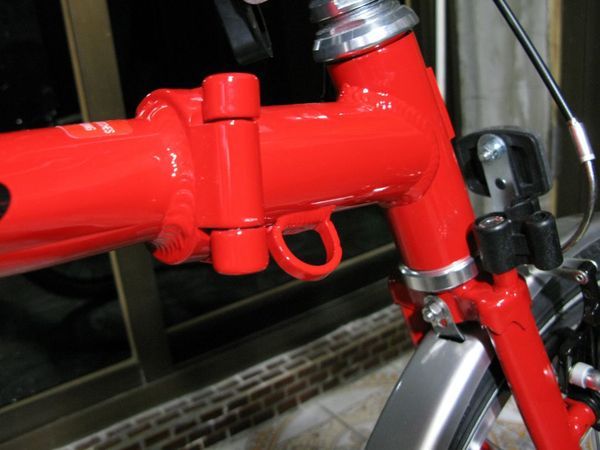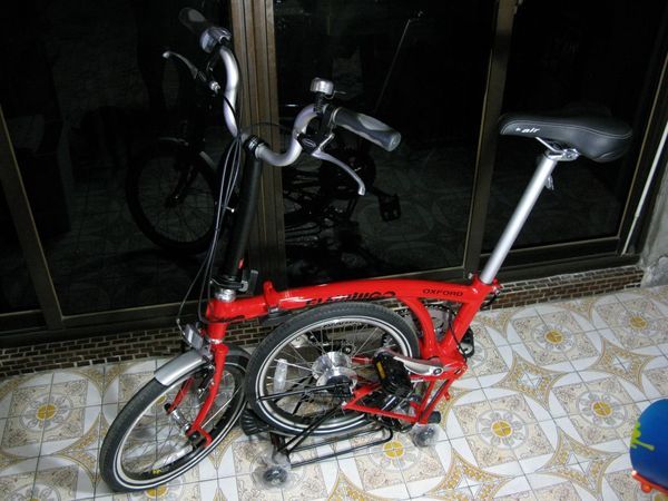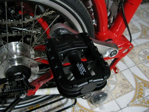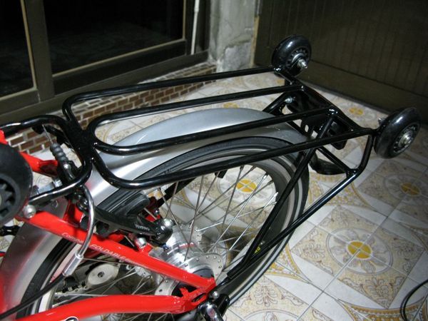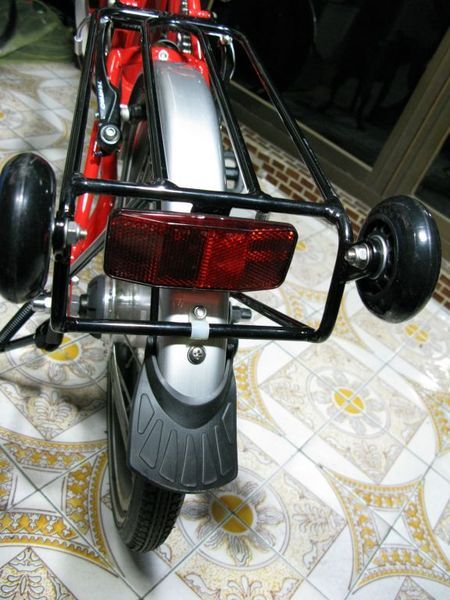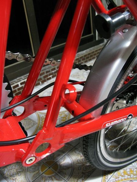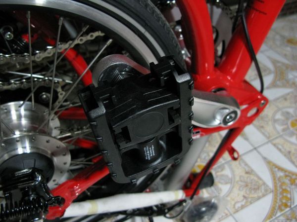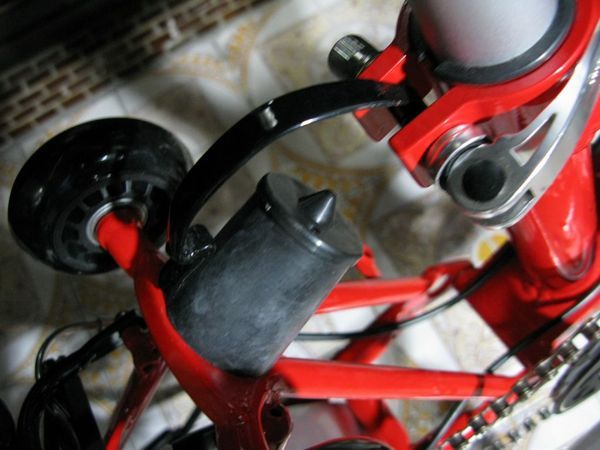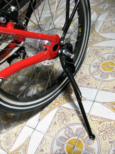 再一張!黑黑有點弧形的東西是固定裝置,是在將車提起時不讓後輪摺下去的功用,聽說小布沒這個,一開始的小佛也沒有,是後來因應使用者的要求才弄出來的!
