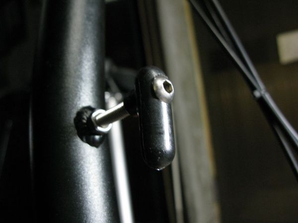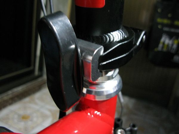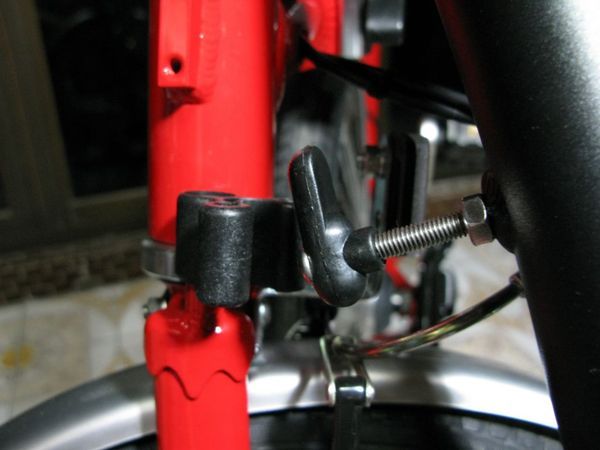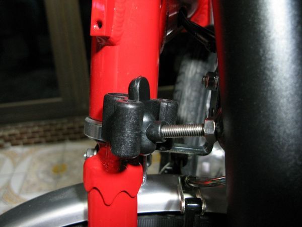 那個黑色帽帽是套住螺絲,以防摺疊時去刮到車身。上方得勾爪,是摺疊時勾住後方車架用的,也是讓摺起來的車身不會亂晃的功能!