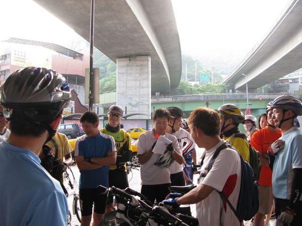 所以啦!評估後第四點出線,只好乖乖的早起出門去集合!集合時間AM06:00,從三重重陽橋這邊到新店捷運站,走河濱腳踏車到再轉北新路過去差不多20幾公里,乖乖!不知道要花多少時間哩!問過小董上次從大稻埕回木柵大約的時間,及活動版上有人好心的提供騎乘時間,讓我心裡有個底,所以我估算可能要一個半小時才到的了目的地,當天早上實地騎乘,真的差不多花一個半小時,出門AM04:38左右,在AM05:58前左右到達,因為逆風,所以速度快不起來,平均應該最高速是20出頭左右,騎乘的路線:三重五華街→重陽橋→延平北路→右轉民族路→出水門,上腳踏車道一路延著台北市外圍河濱腳踏車道騎,直到最後景美舊橋腳踏車終點處,再右轉出去直走接北新路繼續騎就到達目的地囉!