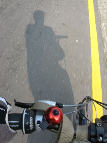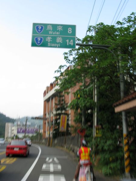 看到遠方白白的重陽橋,快到家了。前面那台四輪車有點過份喔!騎到自行車到來就算了,還騎到對向車道去,看到有車過來了,還不太願意閃咧!讓自行車騎士都快騎到旁邊草叢去了!唉!